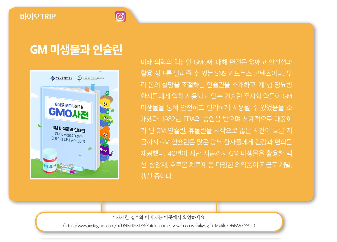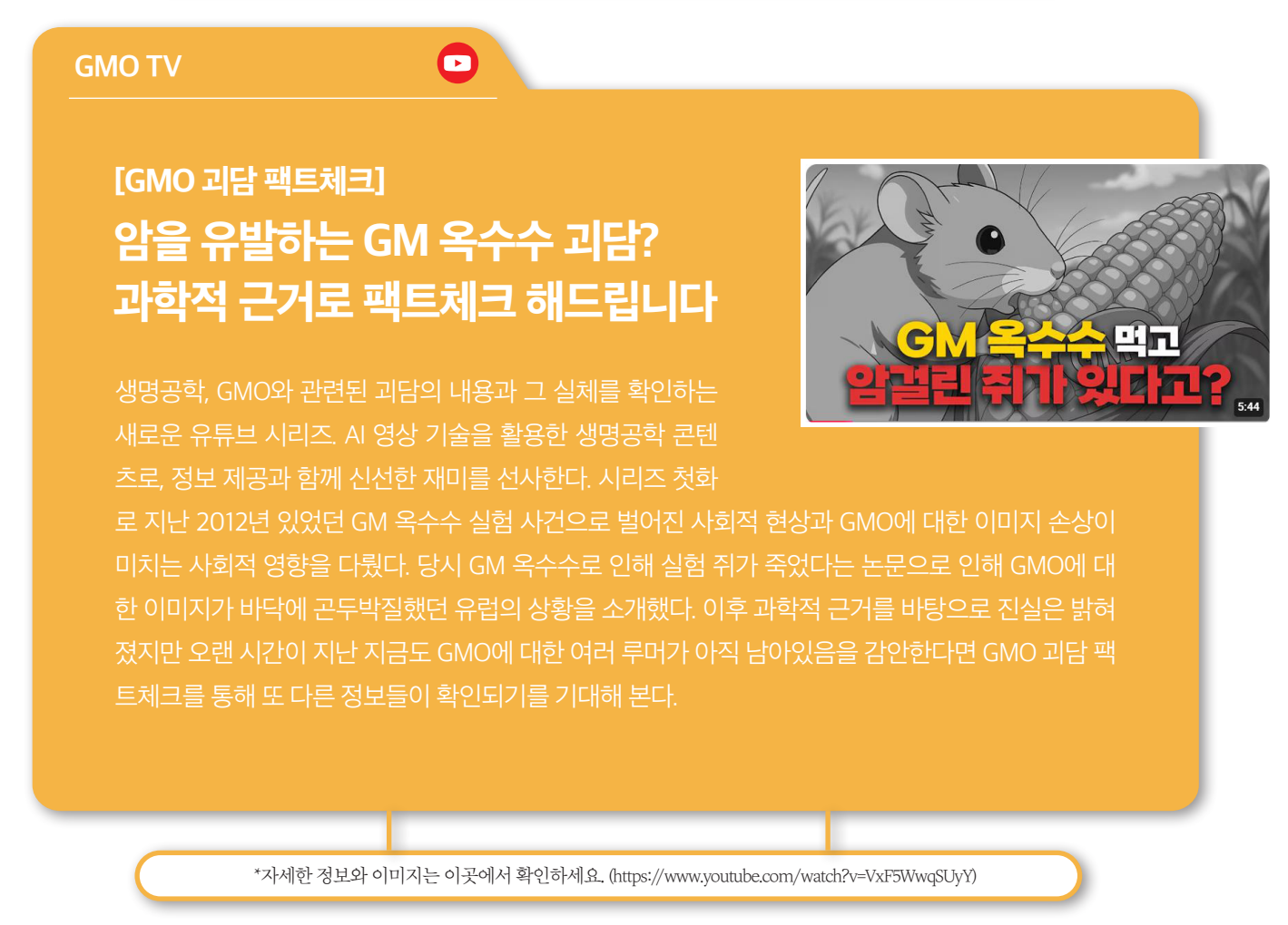 스마트 GMO 리포트는 한국바이오안전성정보센터의 블로그 <ALL about GMO>(http://blog.naver.com/lmoman)와인스타그램<kbch_gmo>(www.instagram.com/kbch_gmo/), 유튜브 채널 <GMO TV>(https://www.youtube.com/@gmotv.KBCH_Official)의흥미로운 콘텐츠들을 모아놓은 코너입니다. 다양하고 재미있는 콘텐츠들을 확인하시고 유익한 정보도 얻어가세요.